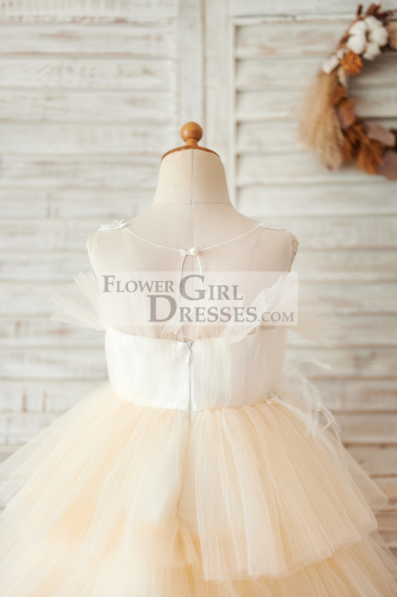 Champagne Cupcake Tulle Beaded Lace Wedding Flower Girl Dress