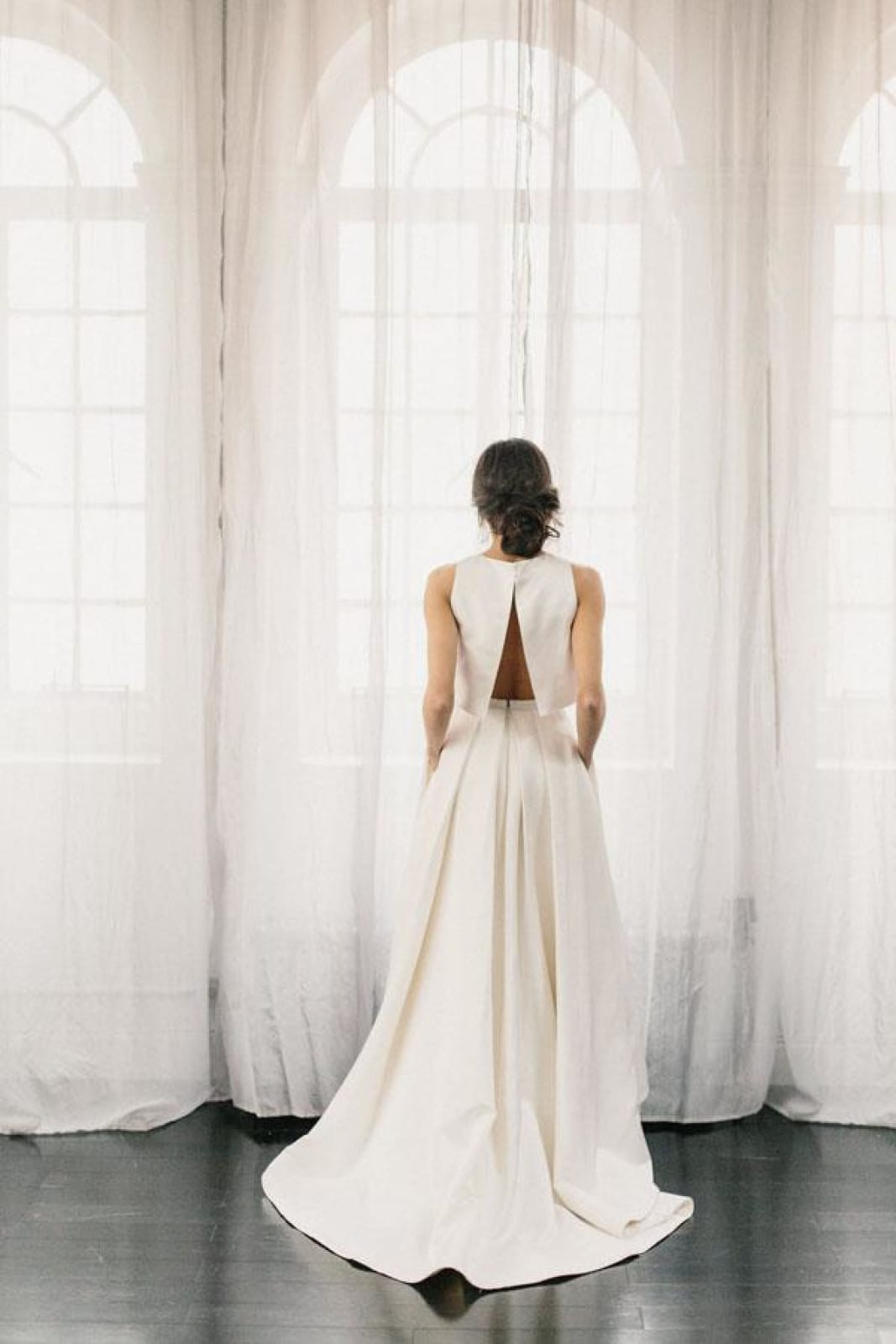 Two Piece Ivory Satin Open Back Wedding Dress, Sweep Train