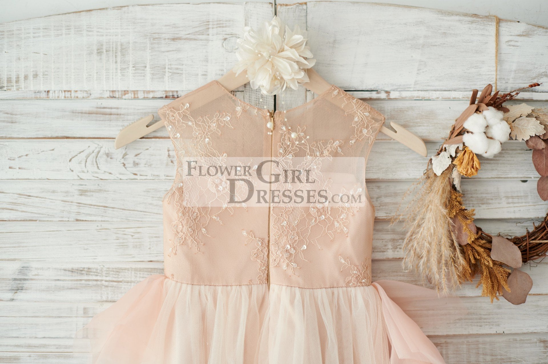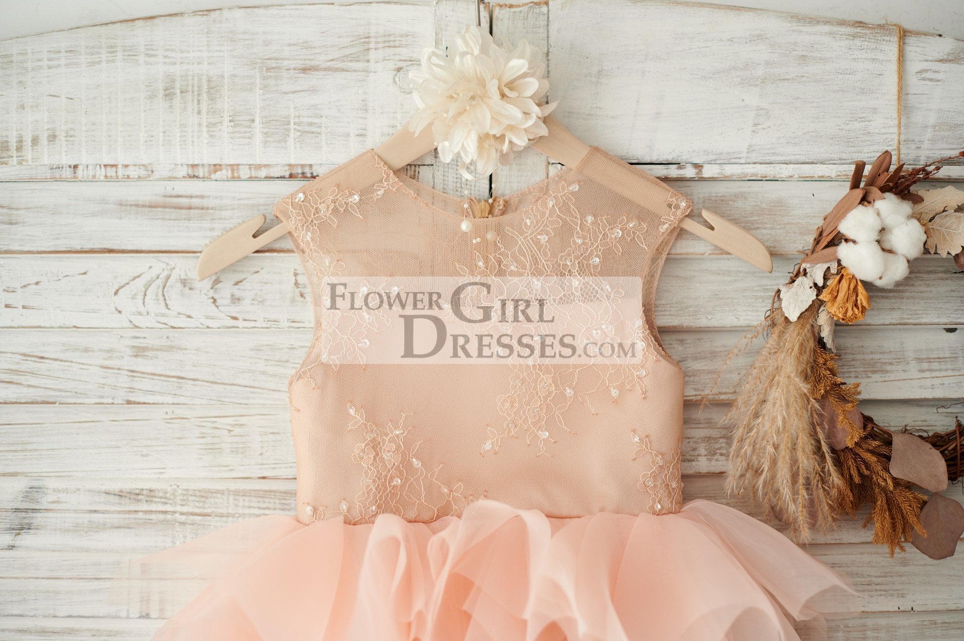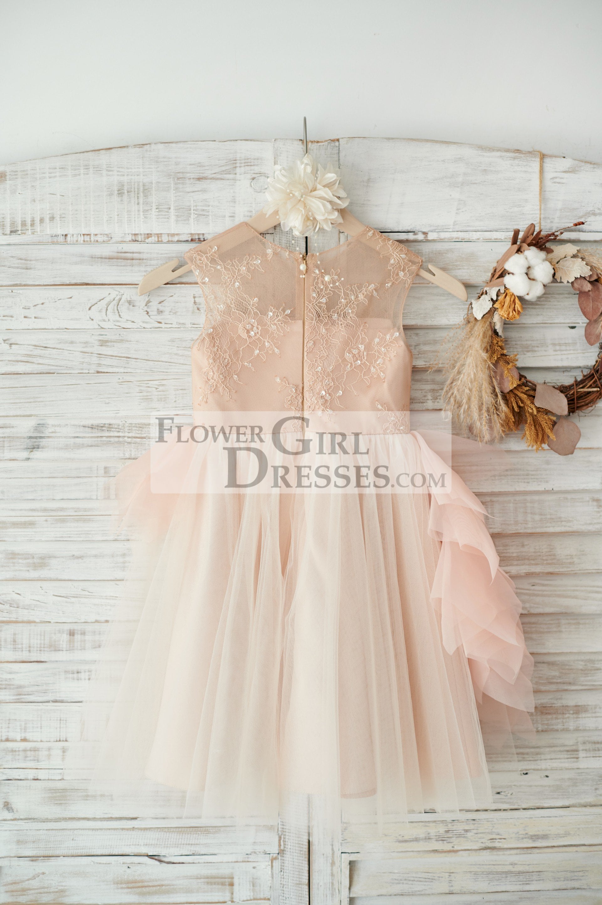 Princess Asymmetrical Lace Tulle Organza Ruffle Wedding Flower Girl Dress