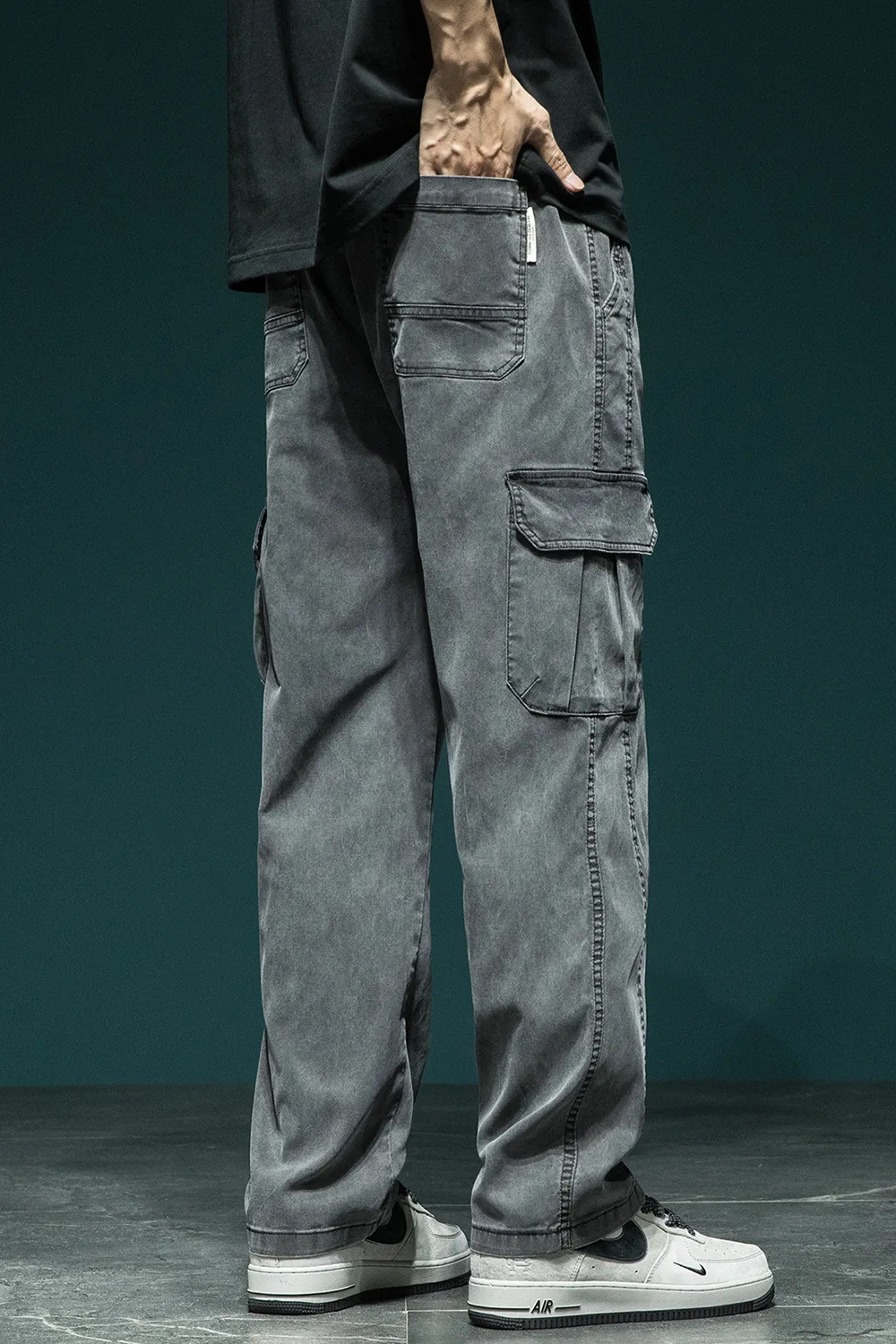 Men’s Japanese Straight Wide Leg Cargo Ankle Pants