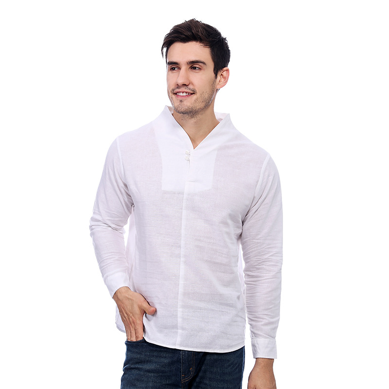 / Men’s Retro Linen Solid Long Sleeve Shirt