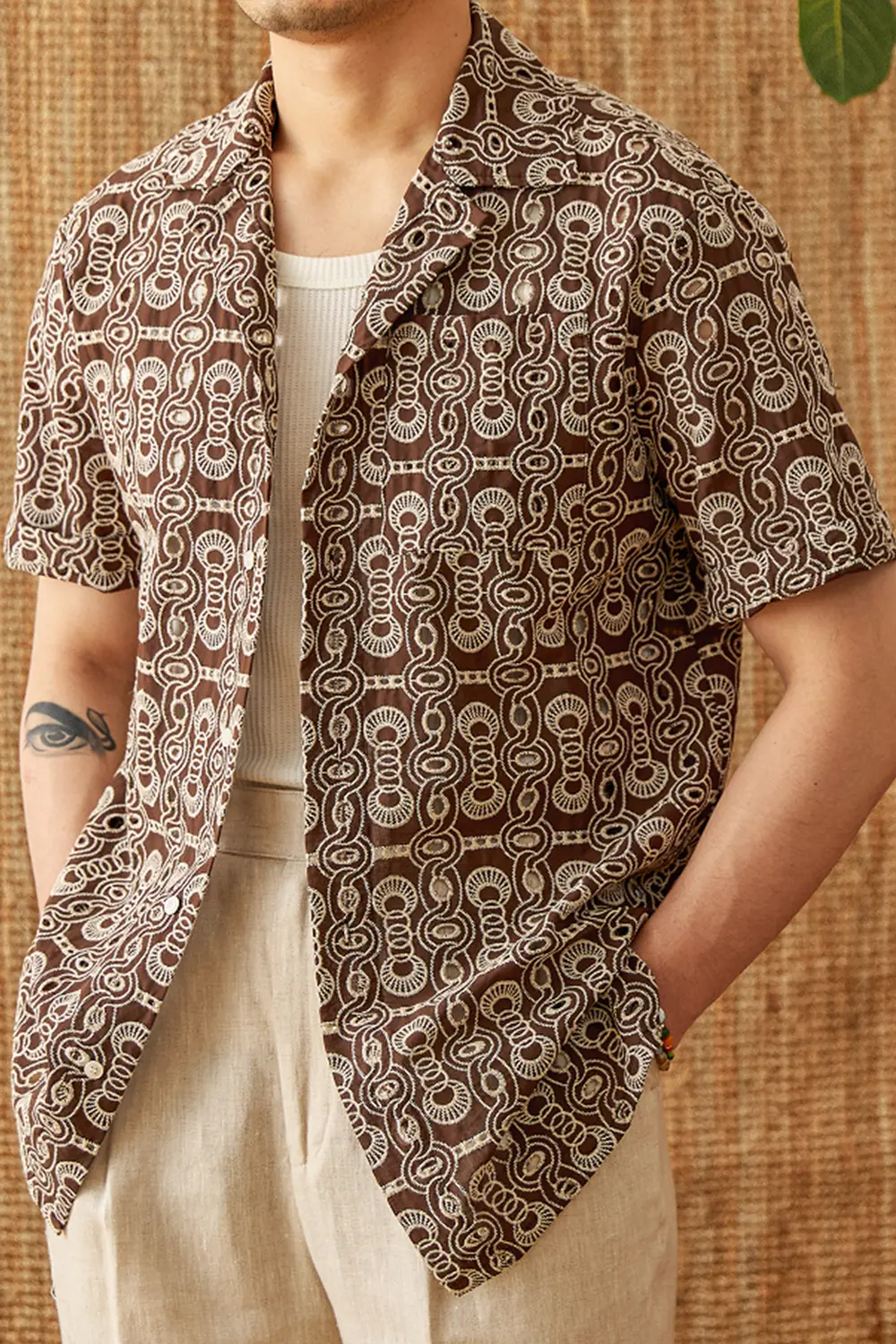 Men’s Vintage Cotton Embroidered Cuban Collar Shirt
