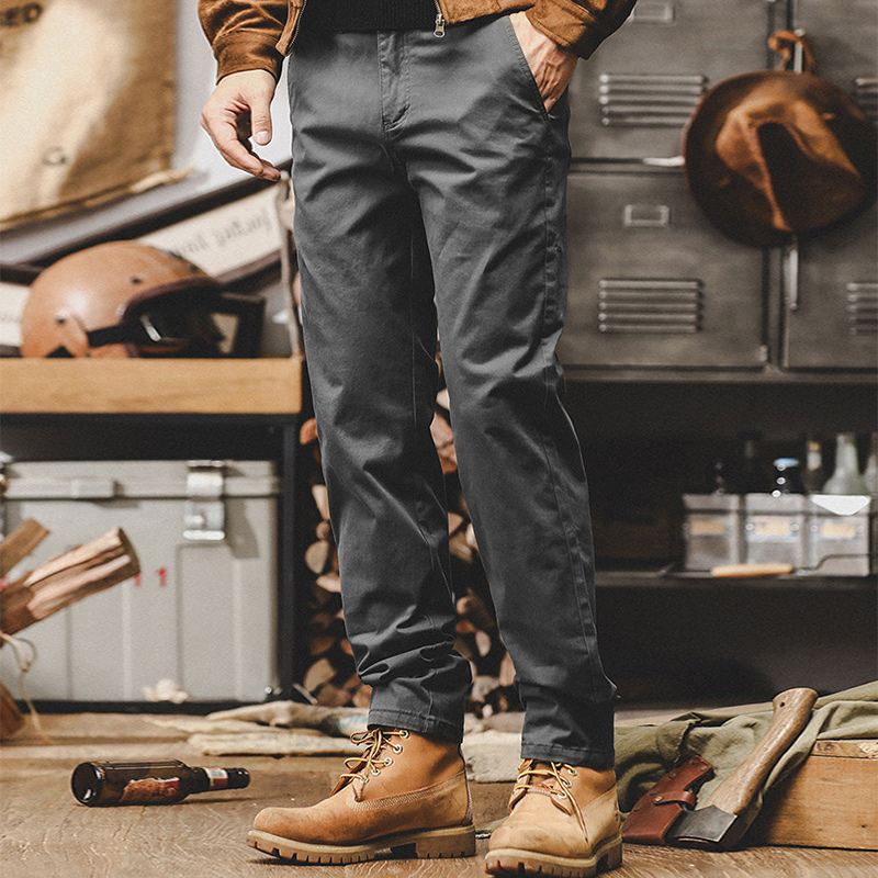 Men’s Vintage Khaki Straight-Leg Pants Casual Streetwear