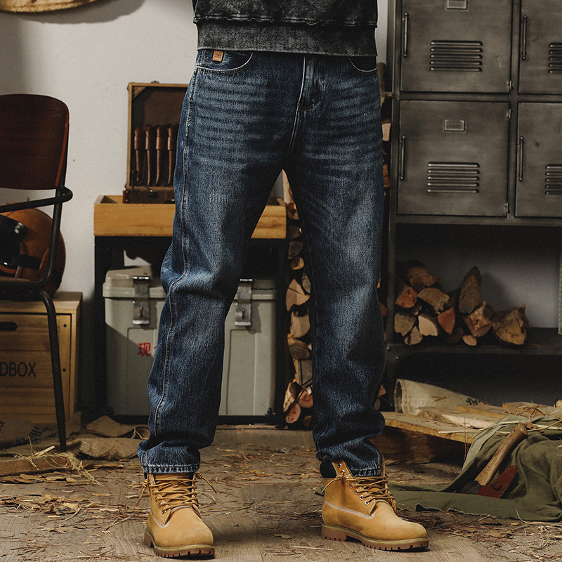 Men’s Washed Denim Pants Loose Fit Straight Embroidered quantity