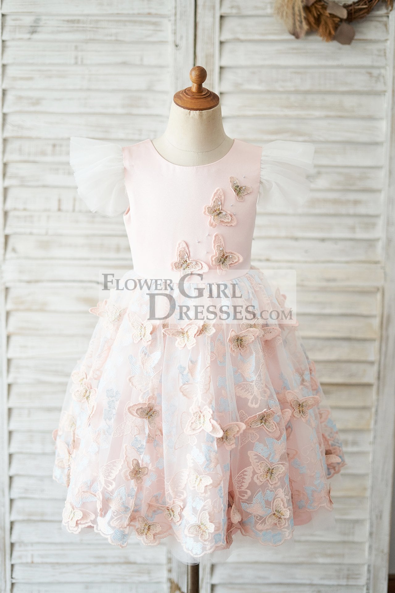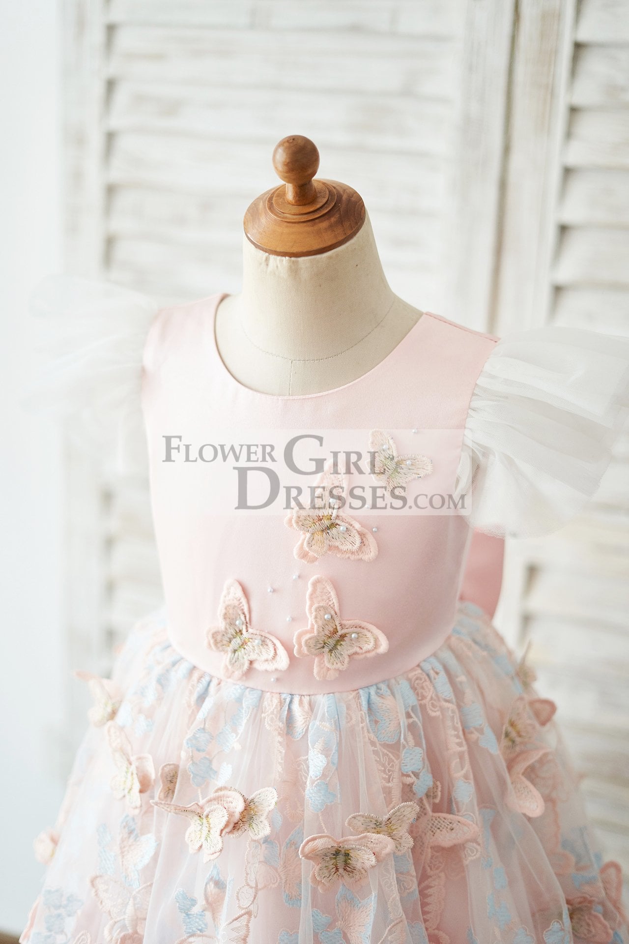 - This dress is made of satin and butterfly tulle fabric;
