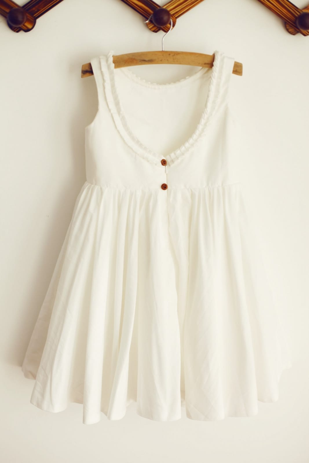 U Back Ivory Cotton Ruffle Neckline Flower Girl Dress
